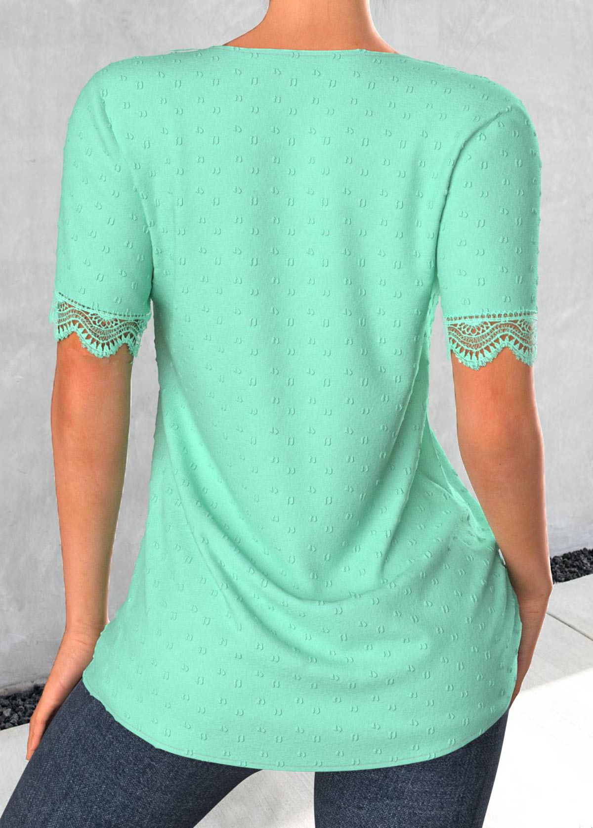 women's clothes / Tops / Blouses  /  Mint Green Patchwork Short Sleeve Split Neck Blouse