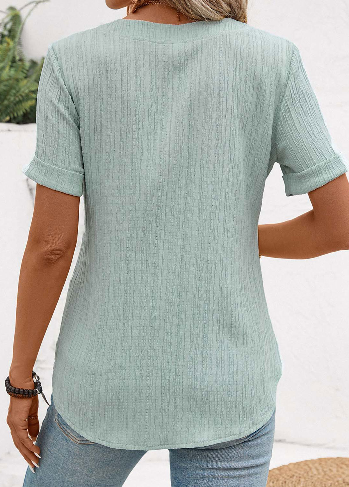 Mint Green Patchwork Short Sleeve Split Neck Blouse