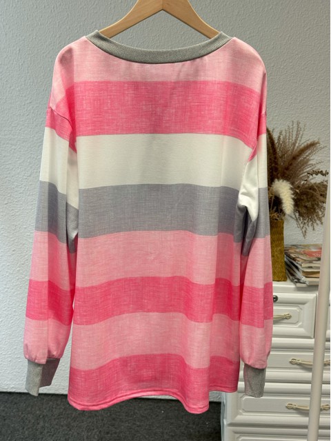 Multi Color Tummy Coverage Striped Long Sleeve Sweatshirt