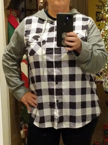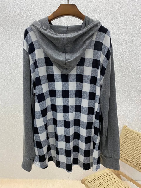 Sage Green Tummy Coverage Plaid Long Sleeve Hoodie