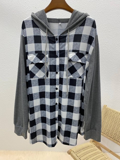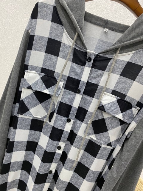 Light Pink Tummy Coverage Plaid Long Sleeve Hoodie