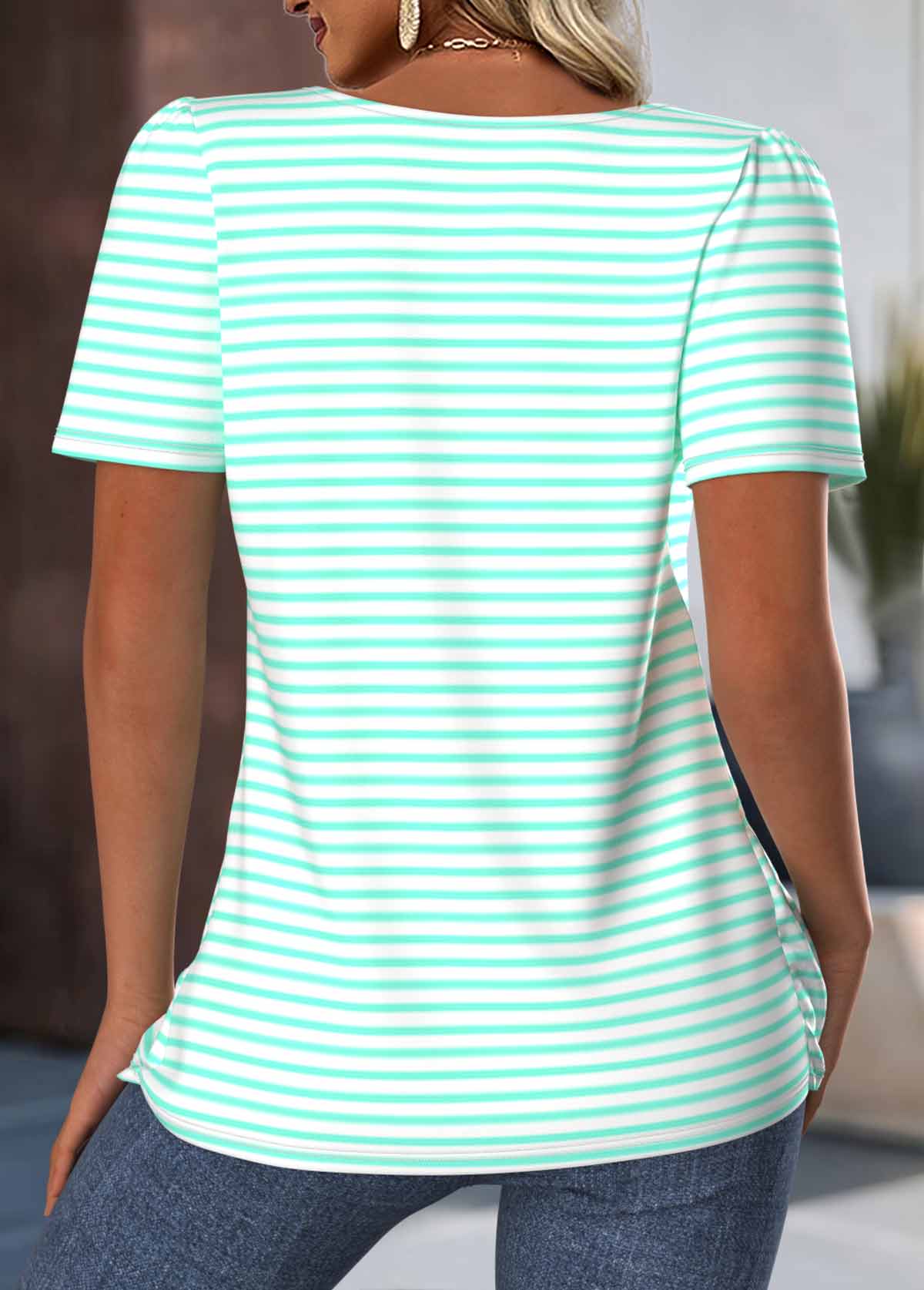 Mint Green Striped Short Sleeve Square Neck T Shirt