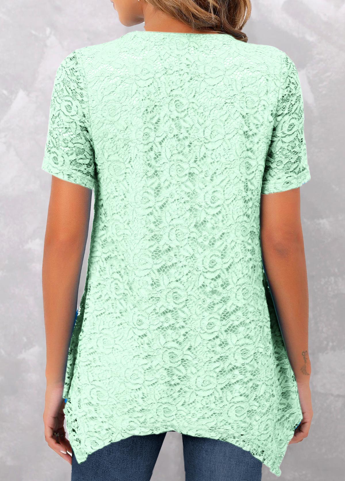Light Green Ditsy Floral Print Lace Trim T Shirt