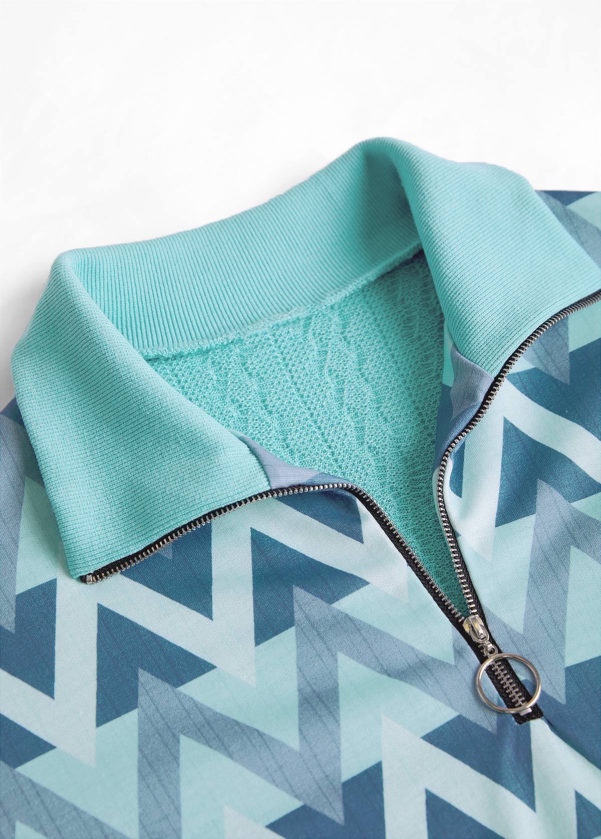 Mint Green Zipper Geometric Print Long Sleeve Sweatshirt
