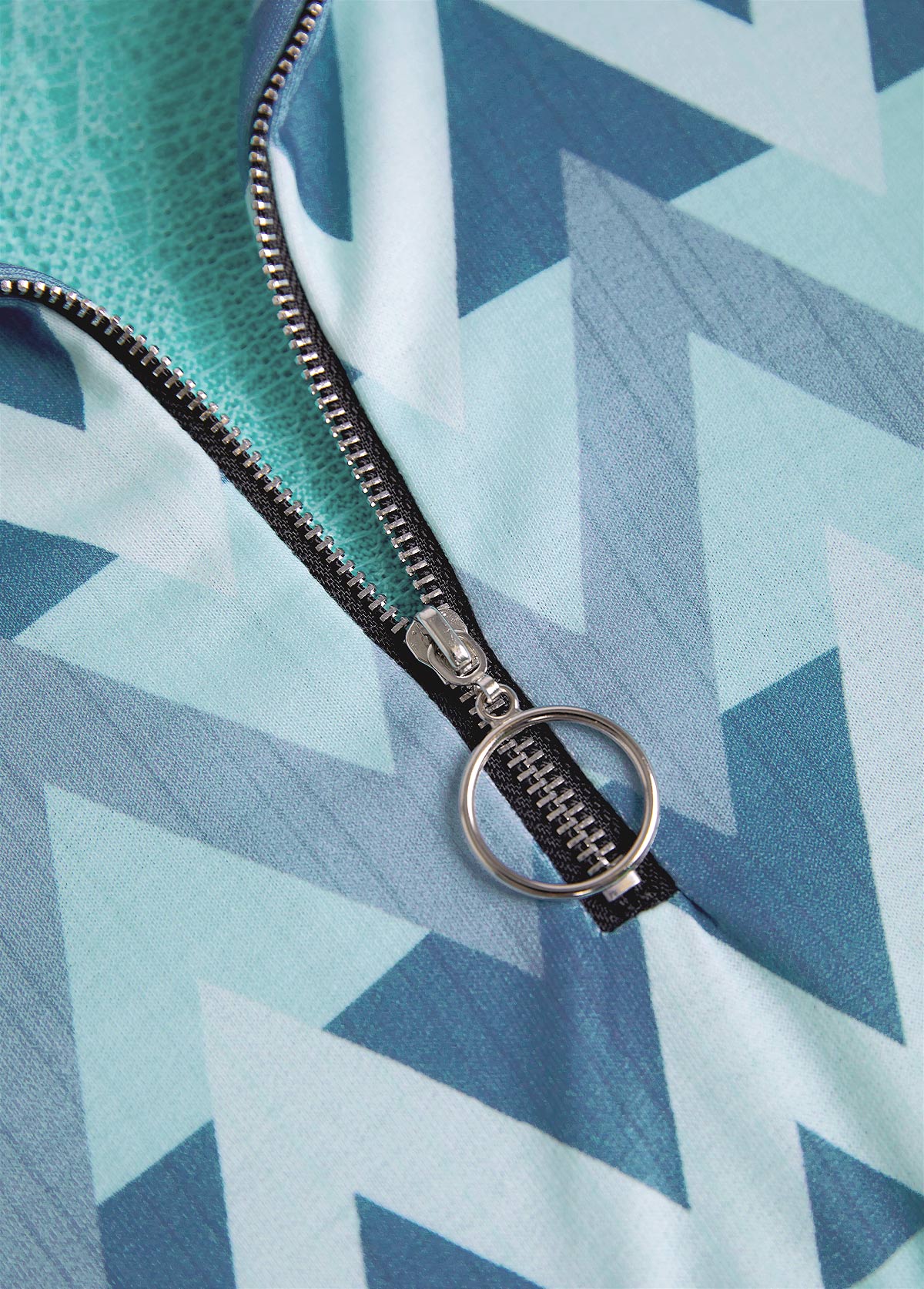 women's clothes / Tops / Sweatshirts&Hoodies  /  Mint Green Zipper Geometric Print Long Sleeve Sweatshirt