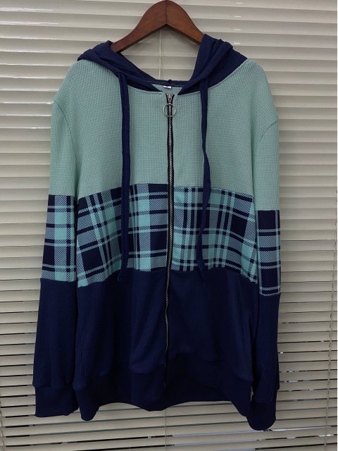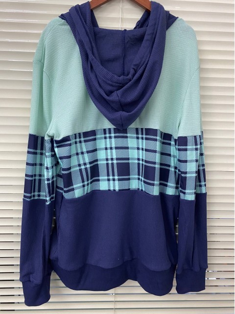 Navy Tummy Coverage Plaid Long Sleeve Hoodie