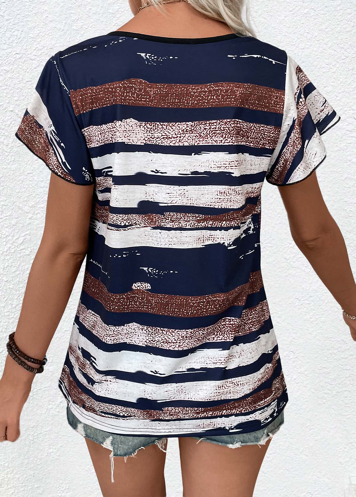 Home  /  Tops  /  Tees&T-shirts  /  Multi Color Button Geometric Print Short Sleeve T Shirt
