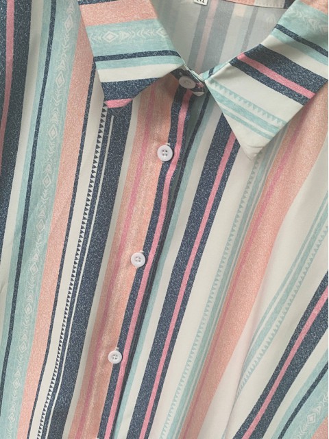 Pink Curved Hem Long Sleeve Turn Down Collar Shirt