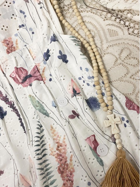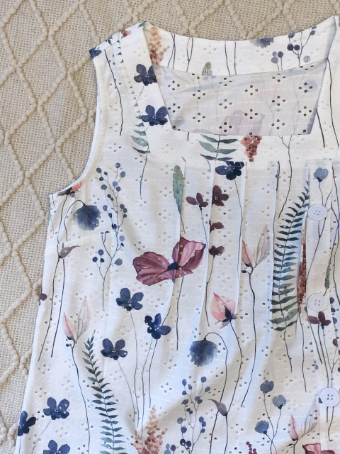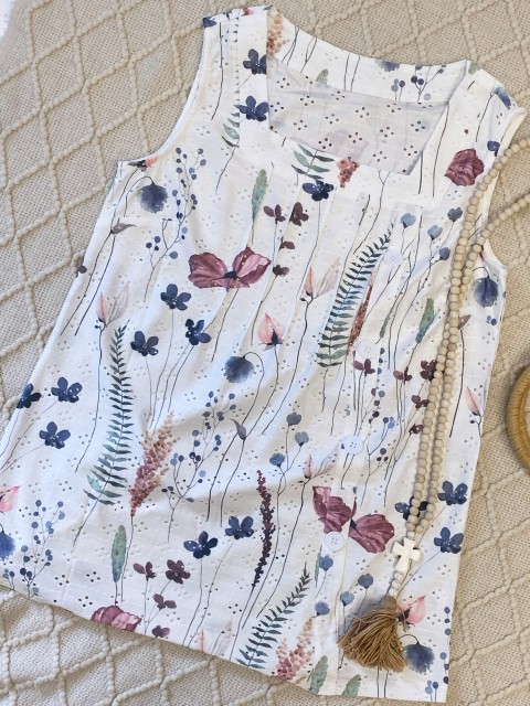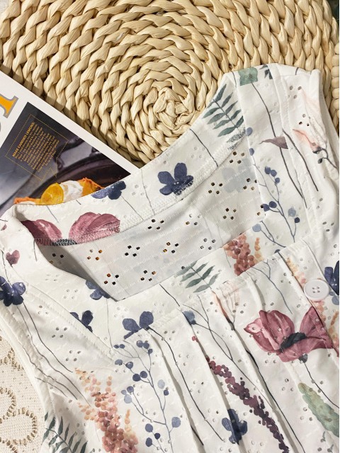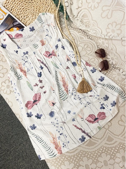 White Hole Floral Print Sleeveless Square Neck Tank Top