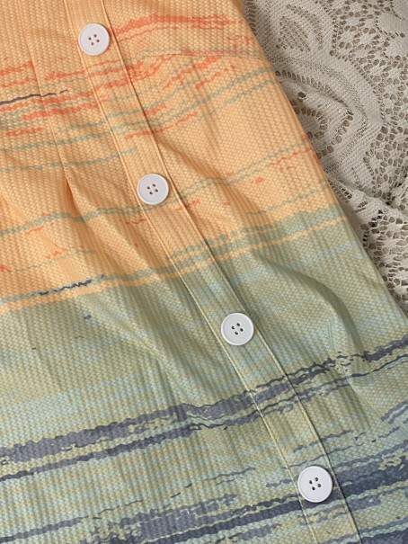 Light Yellow Button Ombre Sleeveless Square Neck Tank Top