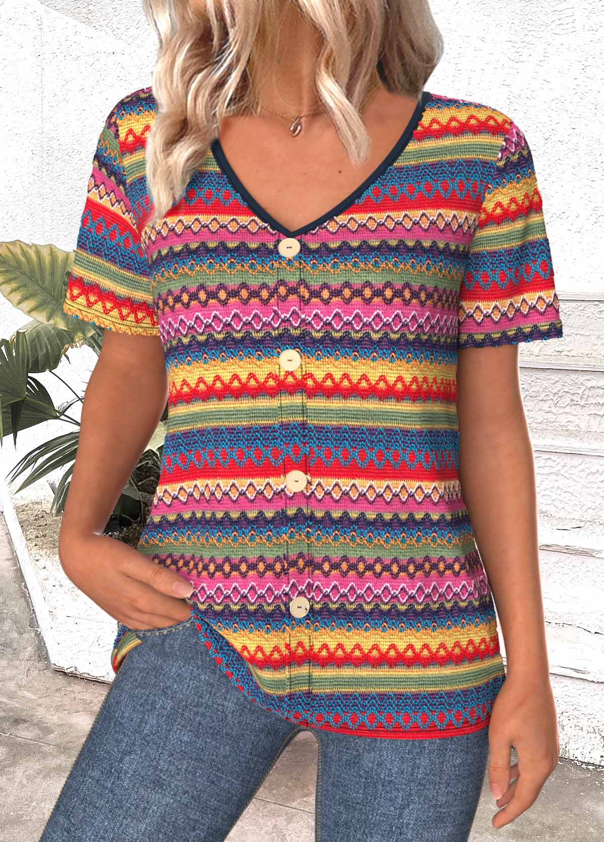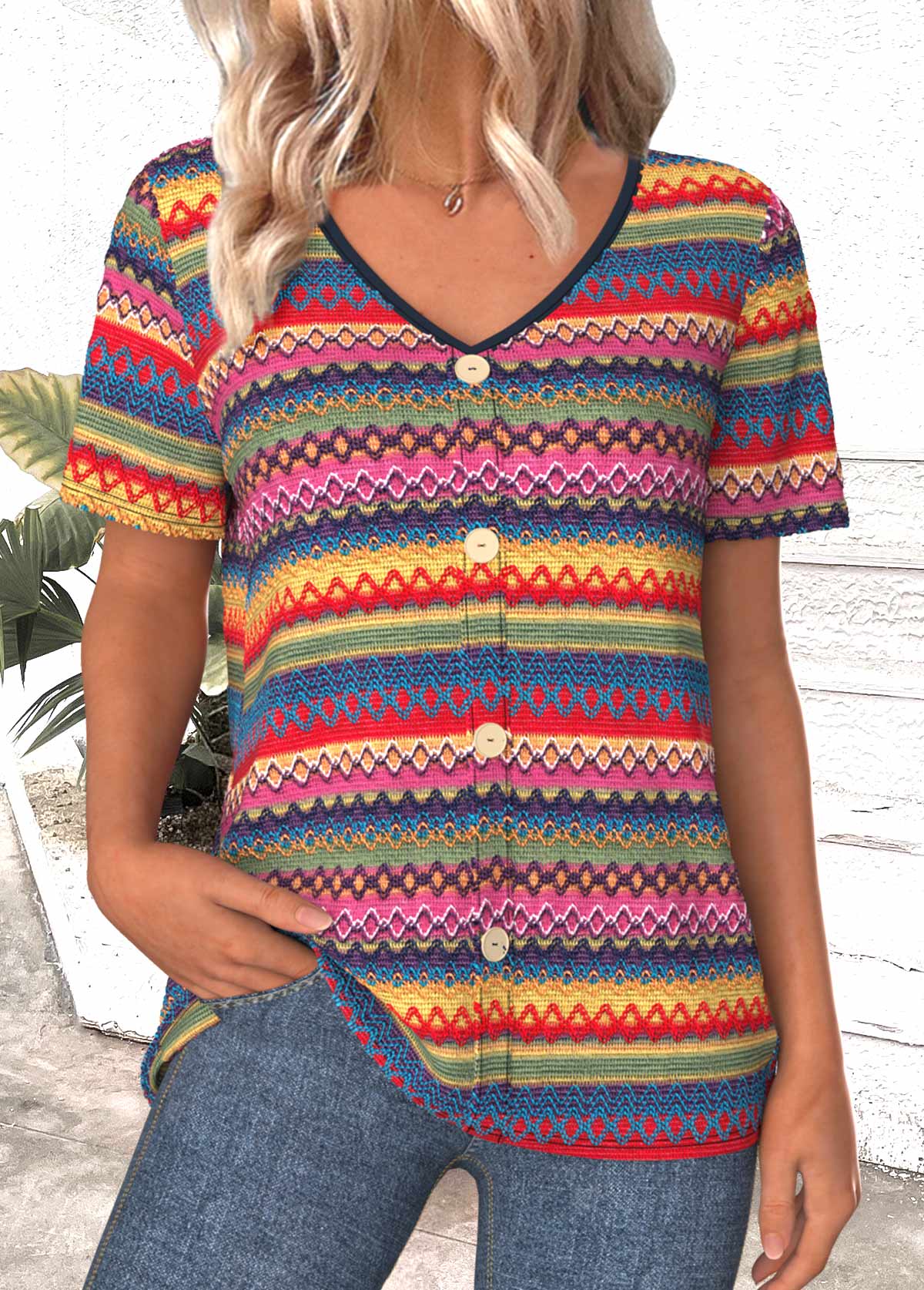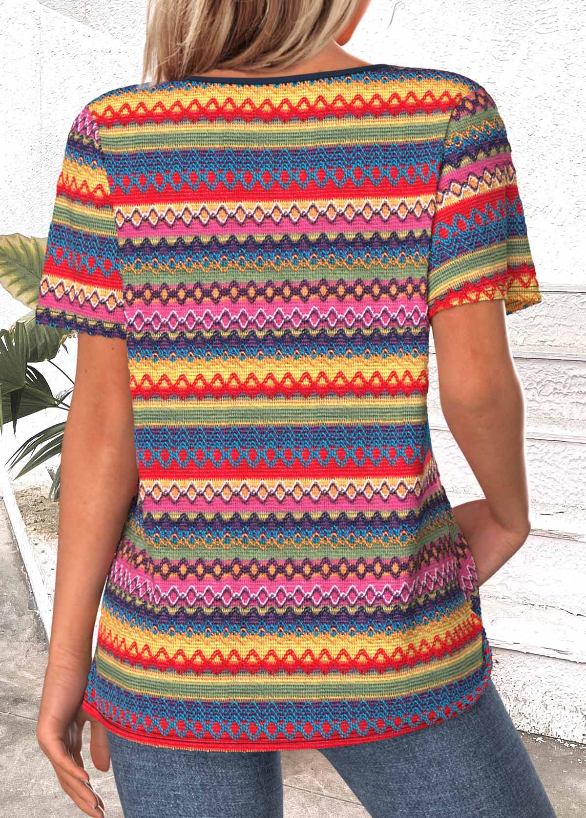 Multi Color Tummy Coverage Tribal Print Long Sleeve Blouse