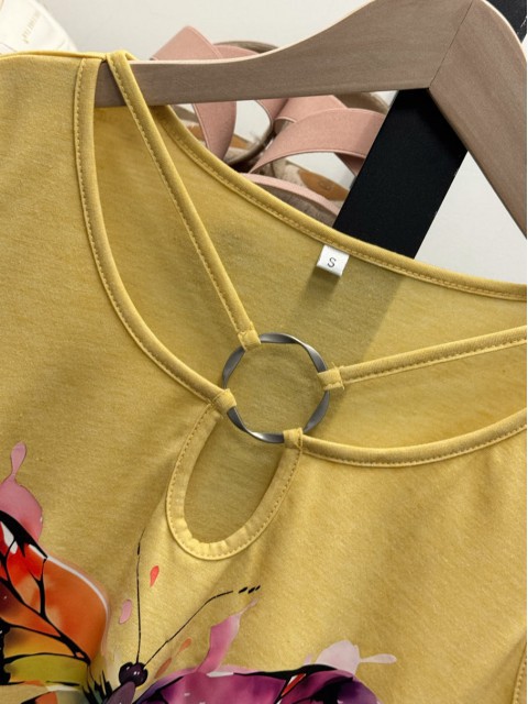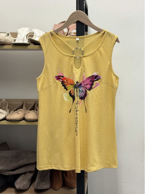 Yellow Circular Ring Butterfly Print Sleeveless Tank Top