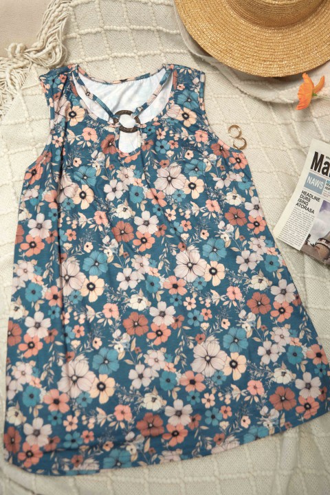 Denim Blue Random Floral Print Sleeveless Tank Top