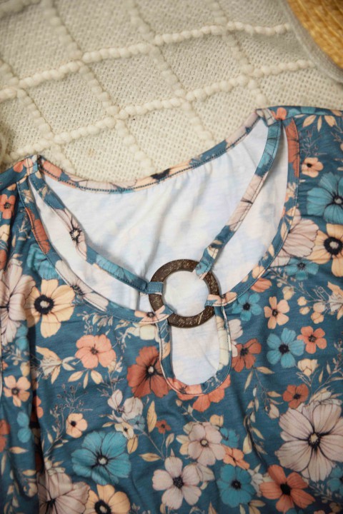 Light Blue Patchwork Floral Print Sleeveless Tank Top