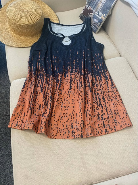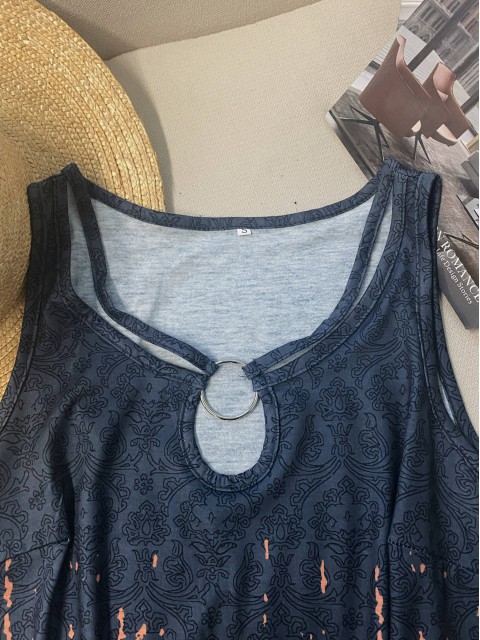Multi Color Circular Ring Floral Print Sleeveless Tank Top
