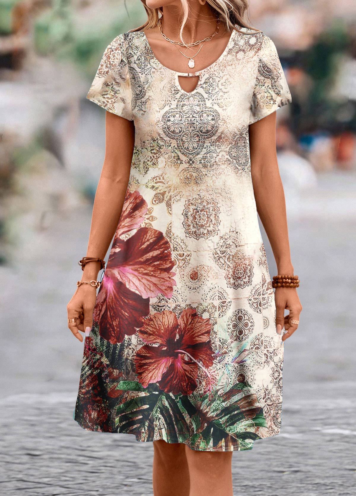 Multi Color Floral Print Short Half Sleeve Dress