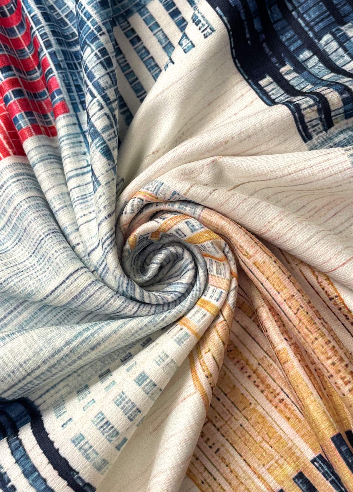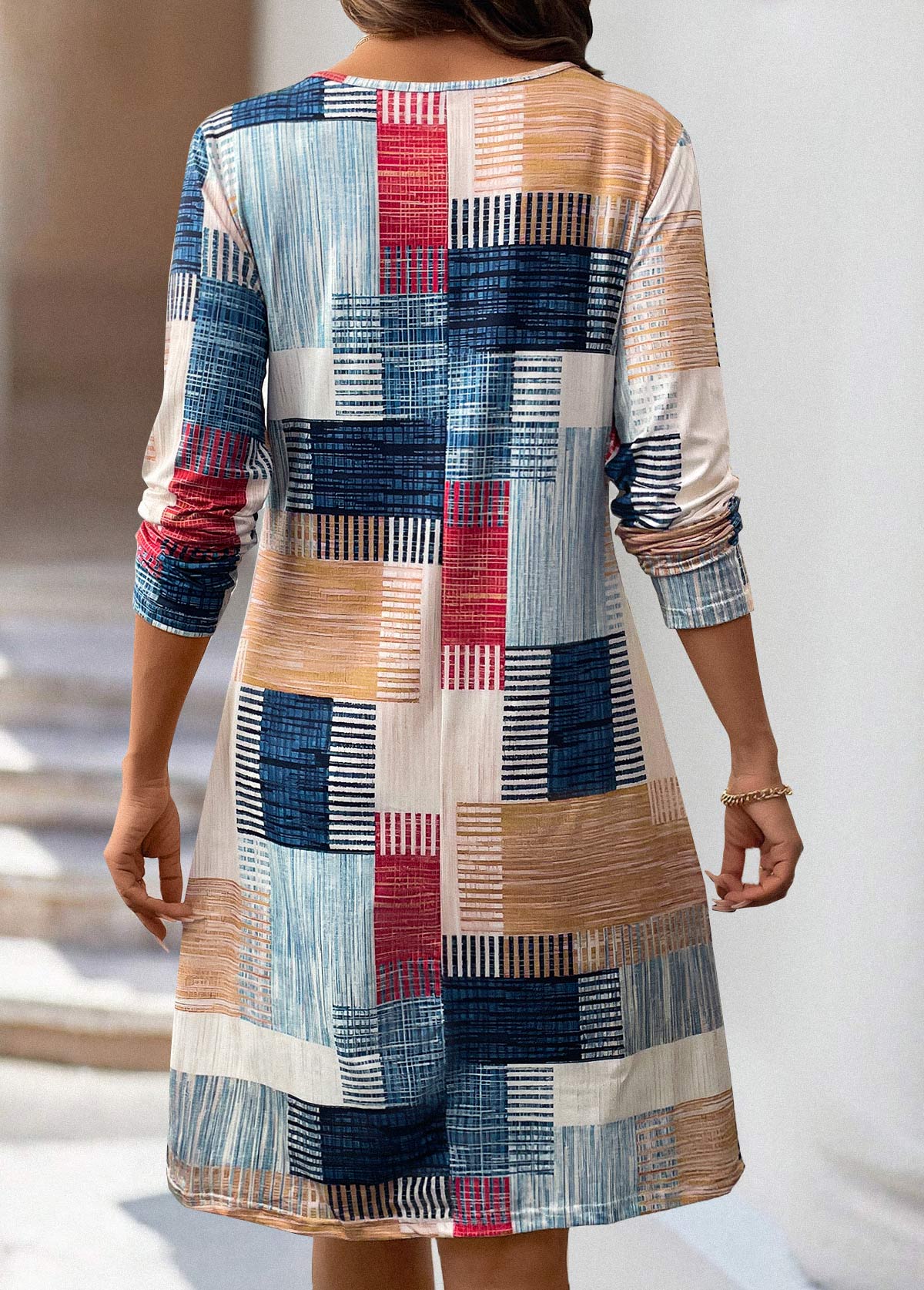 Multi Color Patchwork Geometric Print Short V Neck Dress