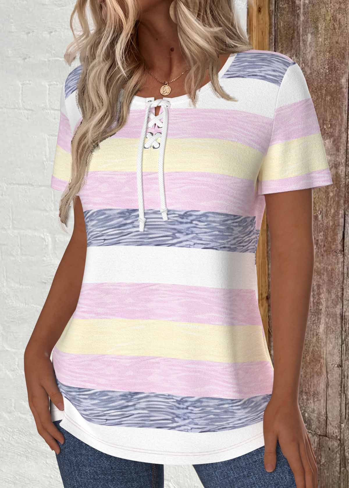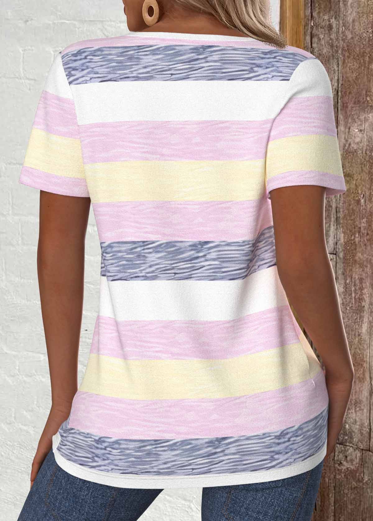 Multi Color Striped Twist Short Sleeve T Shirt