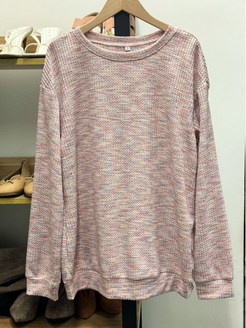 Add a pop of color to your casual look with this multicolor sweatshirt. The relaxed drop-shoulder design and tunic length provide extra comfort and tummy coverage. Made from soft, breathable knit fabric, it’s the perfect piece for laid-back days and effortless style.