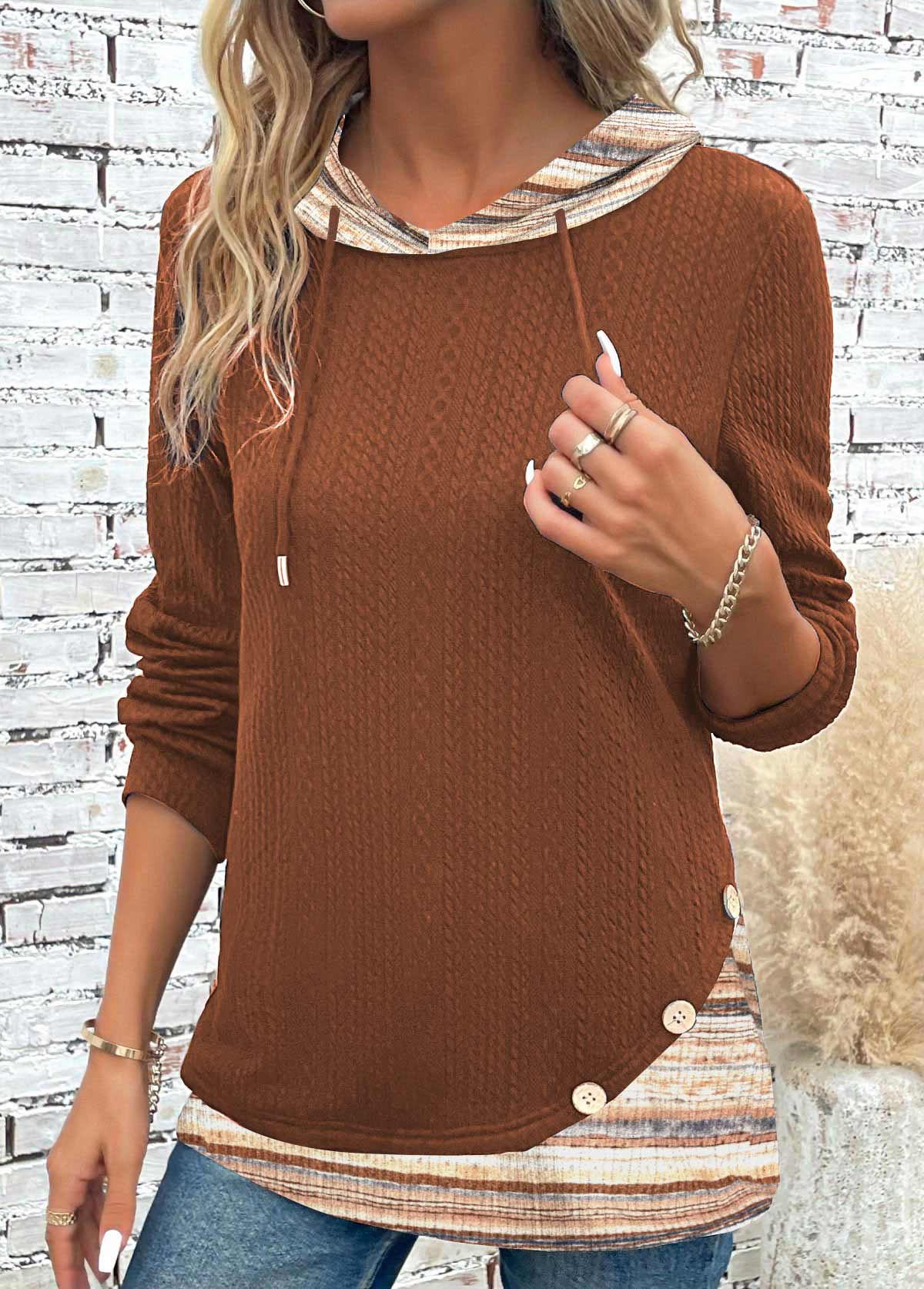 Multi Color Tummy Coverage Striped Long Sleeve Sweatshirt