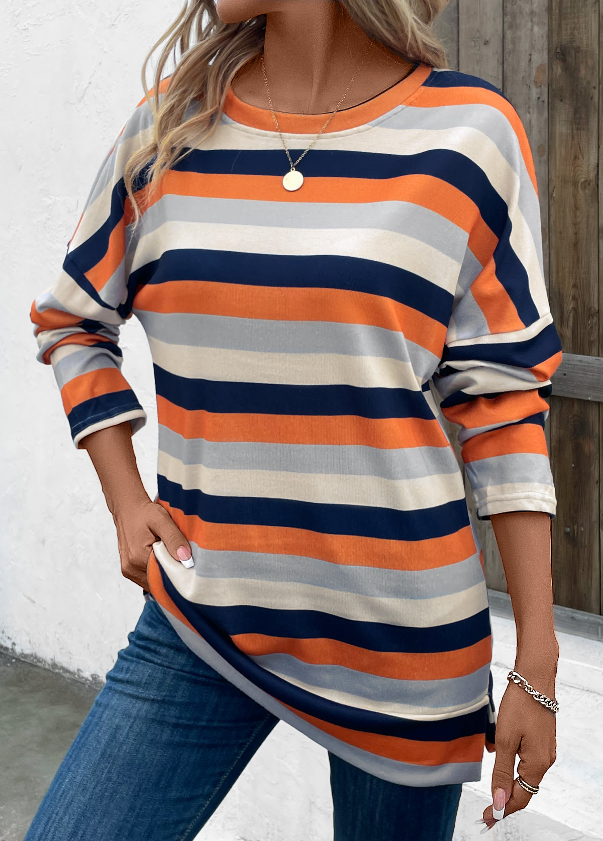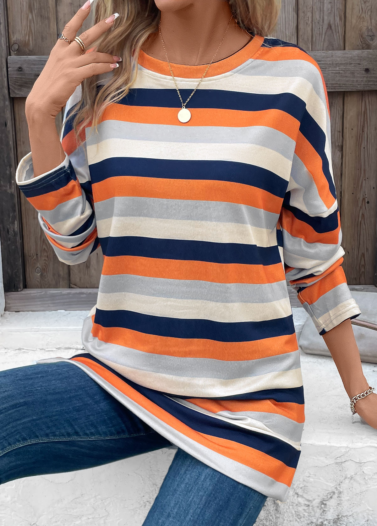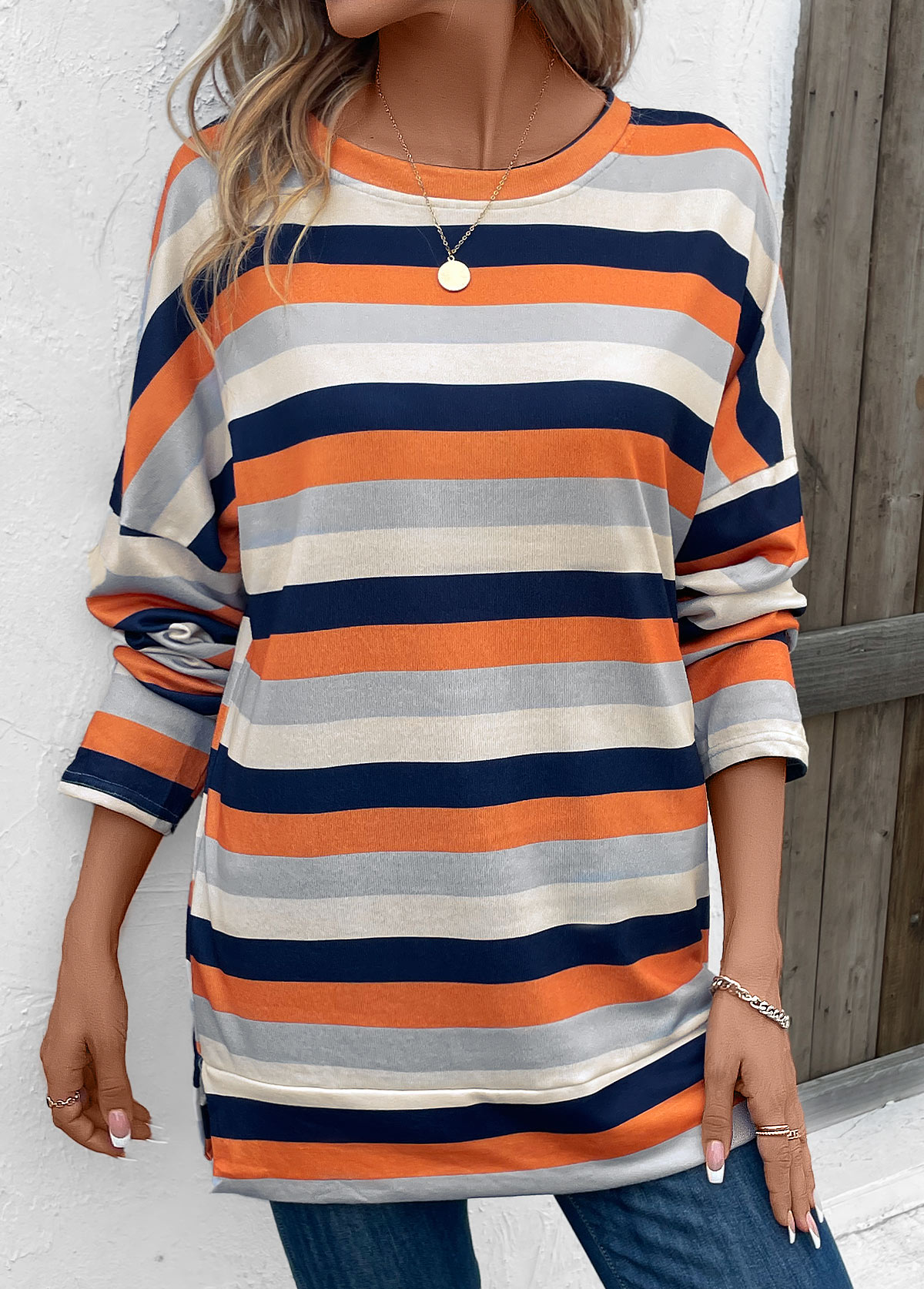 women's clothes / Tops / Tees&T-shirts  /  Multi Color Patchwork Striped Long Sleeve T Shirt