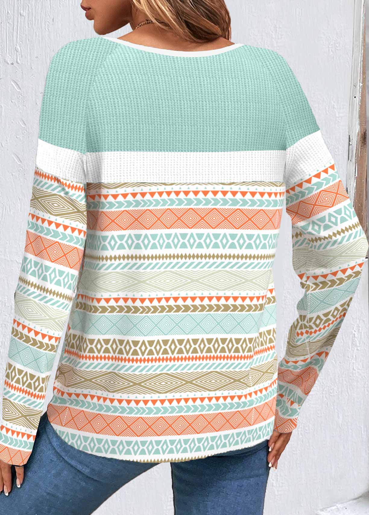 Multi Color Patchwork Tribal Print Long Sleeve Sweatshirt