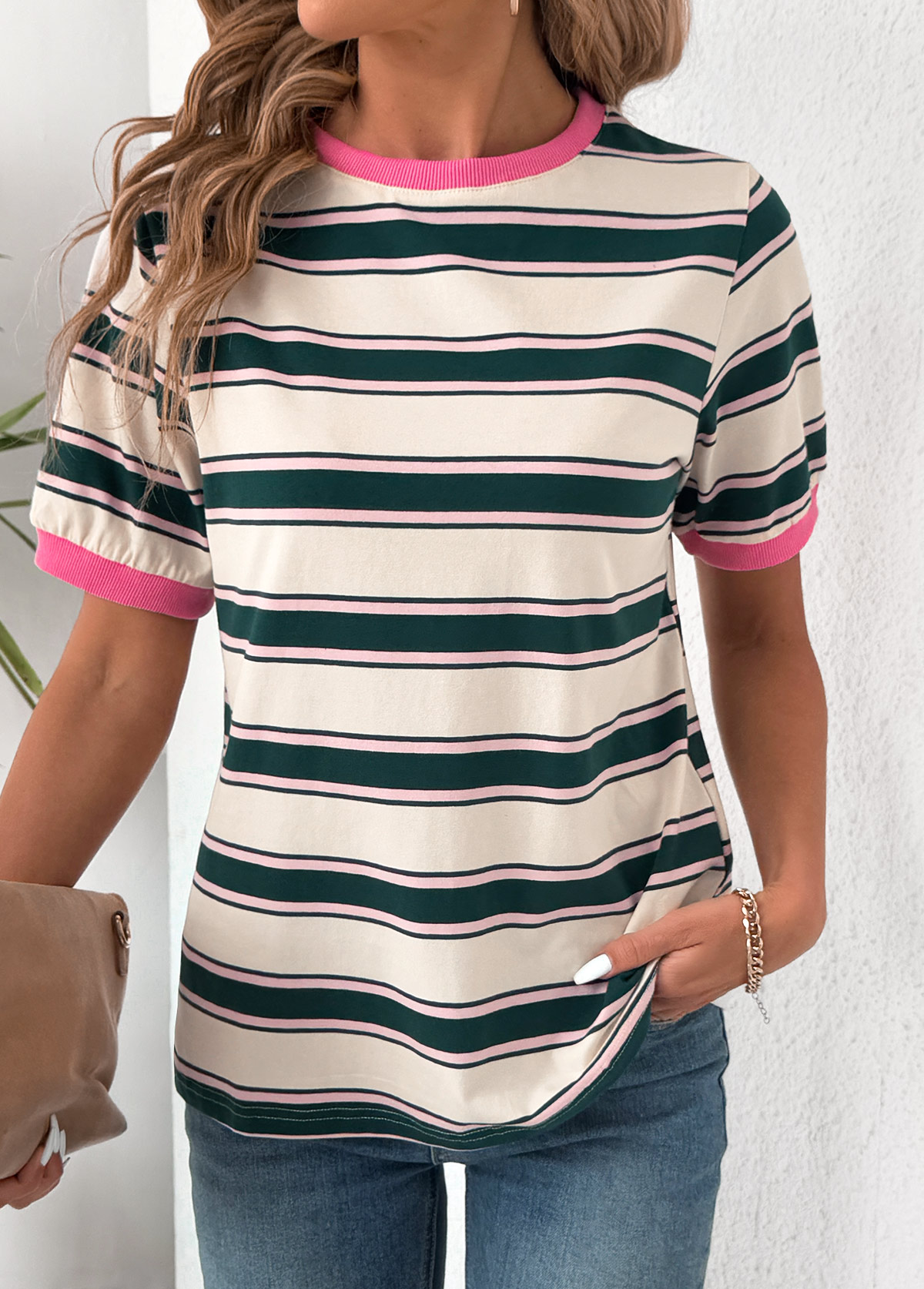 Multi Color Bowknot Striped Short Sleeve T Shirt