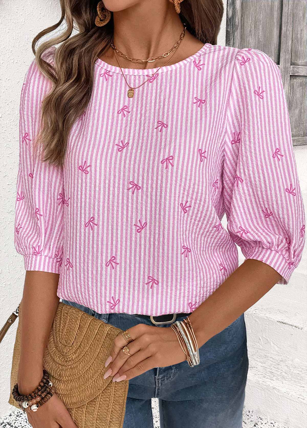 Light Pink Geometric Print Tummy Coverage T Shirt