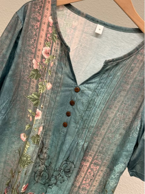 Beige Tummy Coverage Floral Print Long Sleeve T Shirt