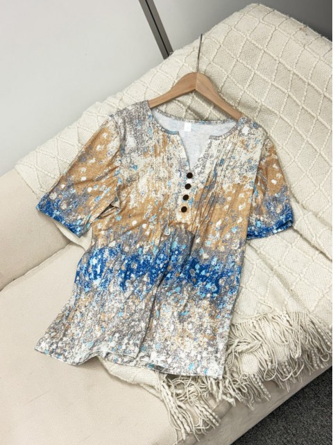 Light Camel Tummy Coverage Tribal Print T Shirt
