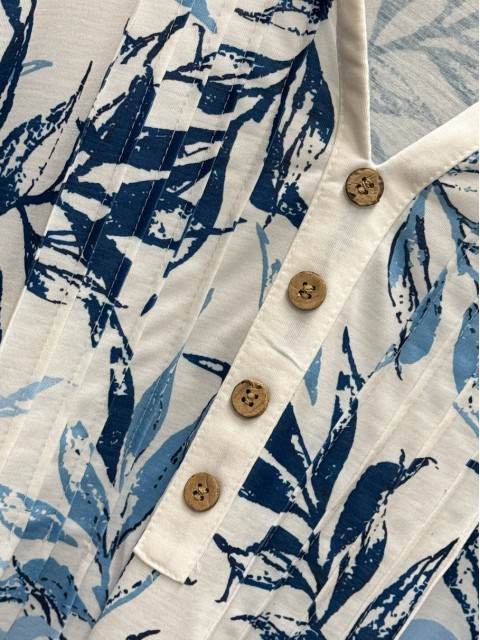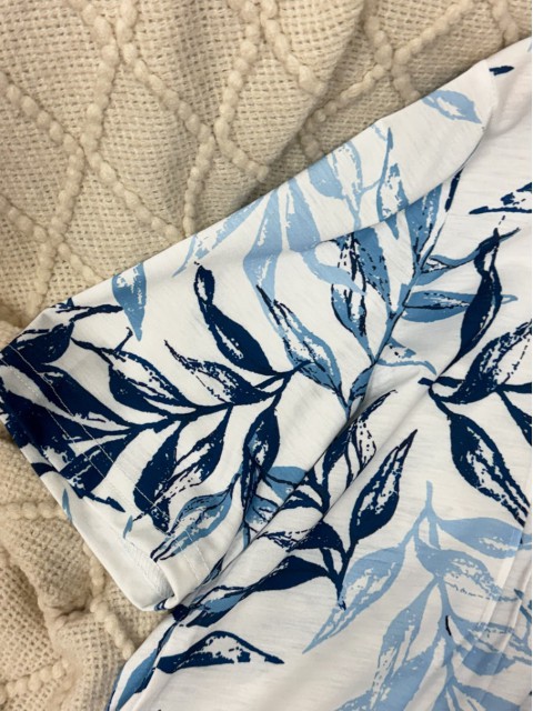 Turquoise Drawstring Tropical Plants Print Elastic Waist Pants