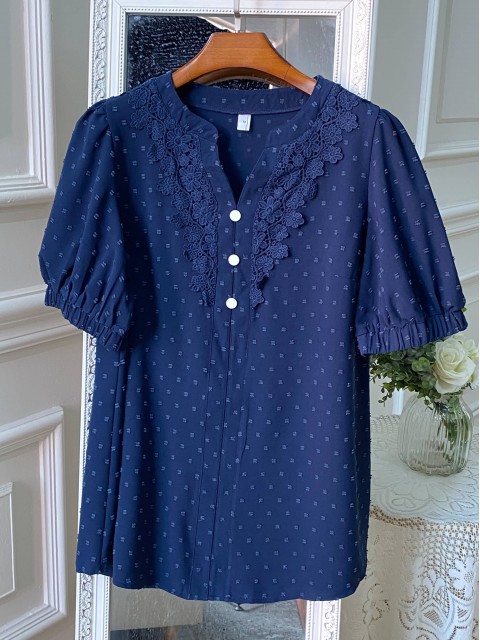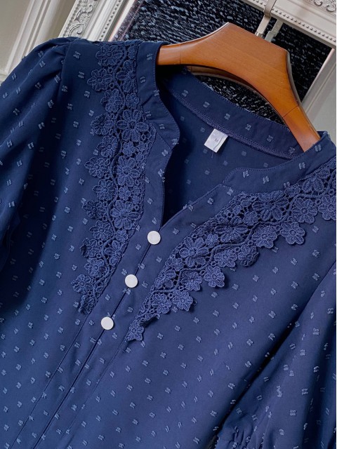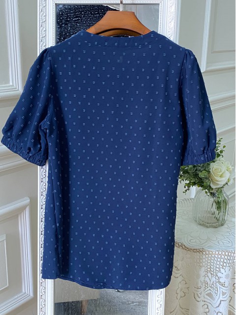 Black Tuck Stitch Geometric Print Long Sleeve Blouse