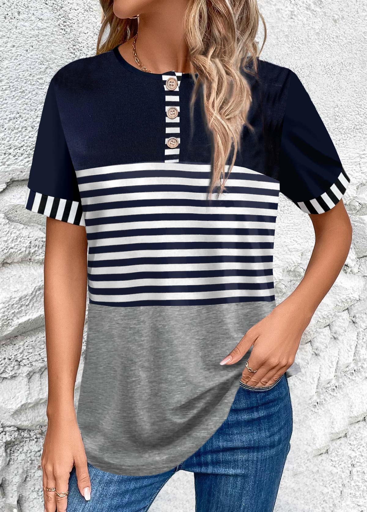 Multi Color Bowknot Striped Short Sleeve T Shirt