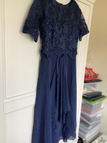 Home  /  Dresses  /  Navy Lace Short Sleeve Round Neck Dress