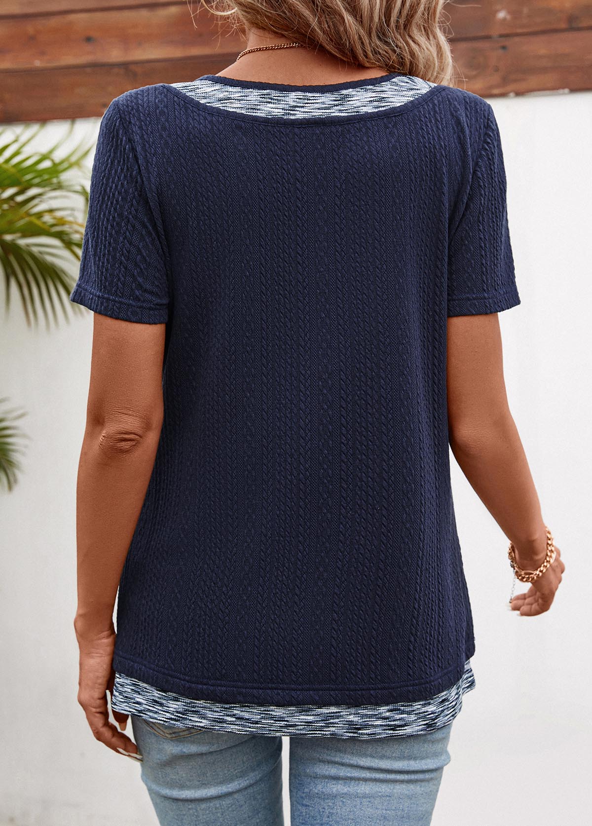 Black Patchwork Leopard Long Sleeve V Neck T Shirt