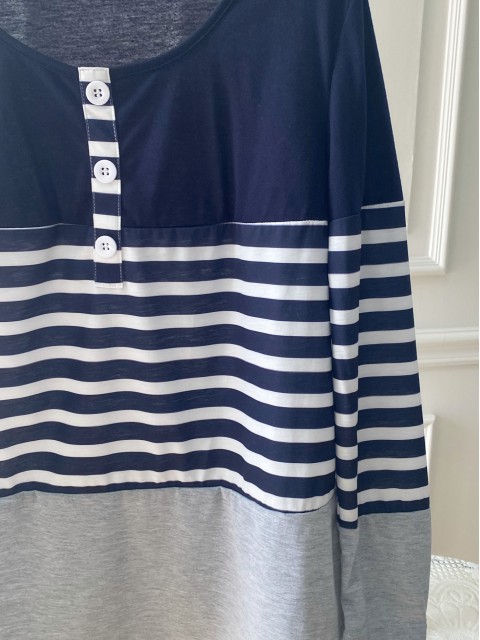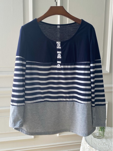 Blue Button Floral Print Long Sleeve T Shirt