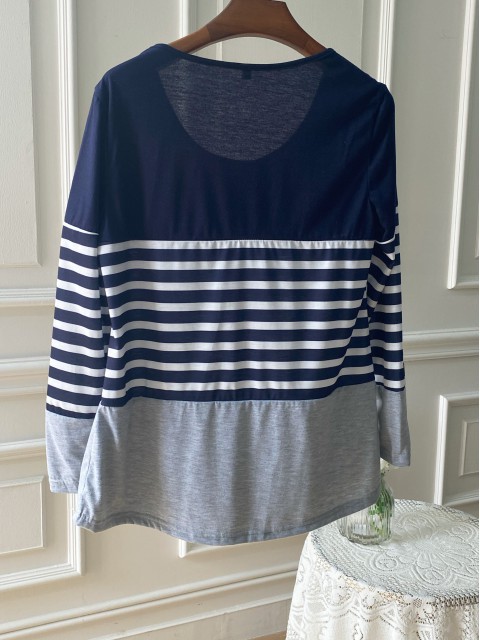 White Patchwork Long Sleeve Round Neck T Shirt