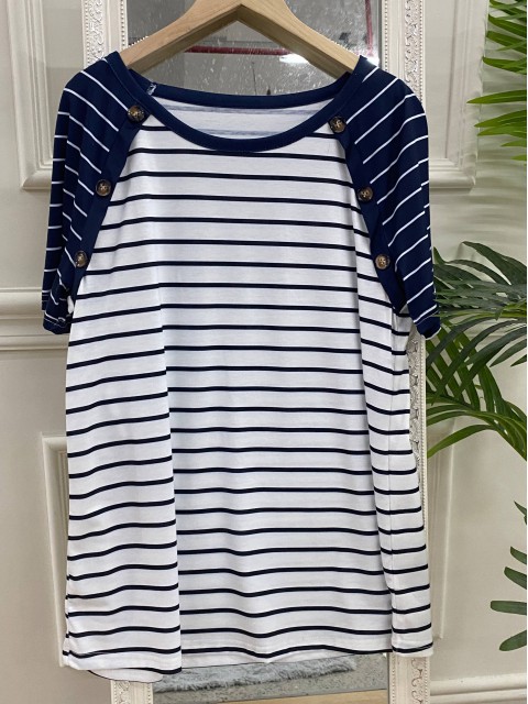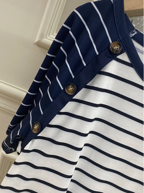 Yellow Lightweight Striped Short Sleeve Split Neck Blouse