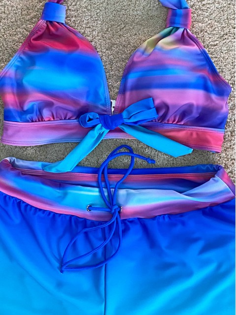 Ruched Mid Waisted Striped Multi Color Bikini Set