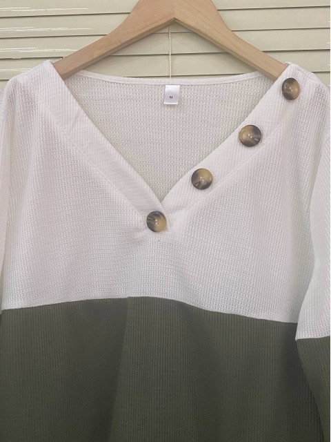 Light Grey Button Long Sleeve Split Neck Sweatshirt