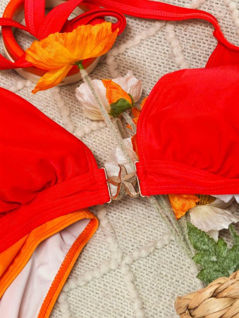 Contrast Binding High Waisted Geometric Print Bikini Set