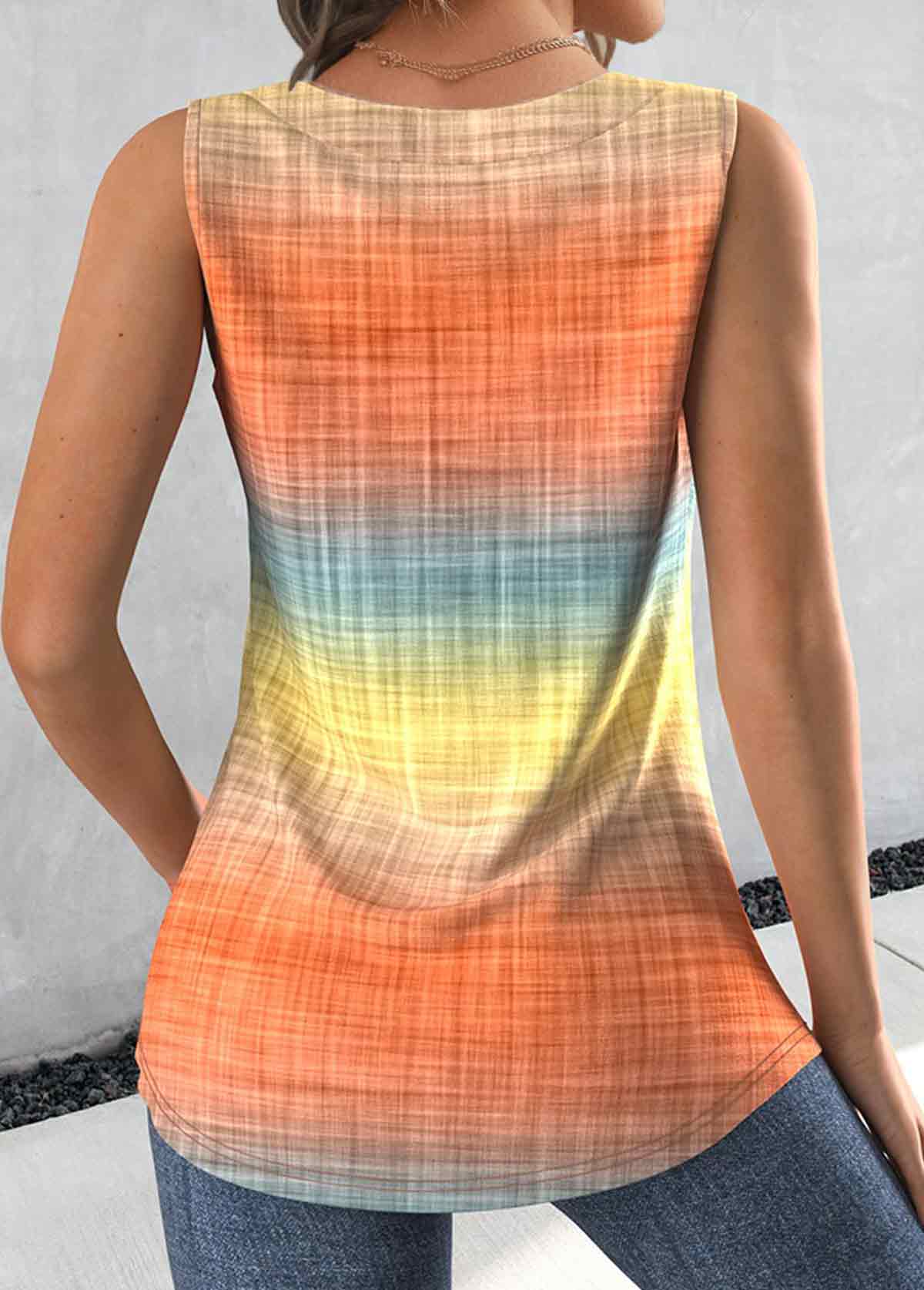 Multi Color Geometric Print Tummy Coverage Sleeveless Tank Top