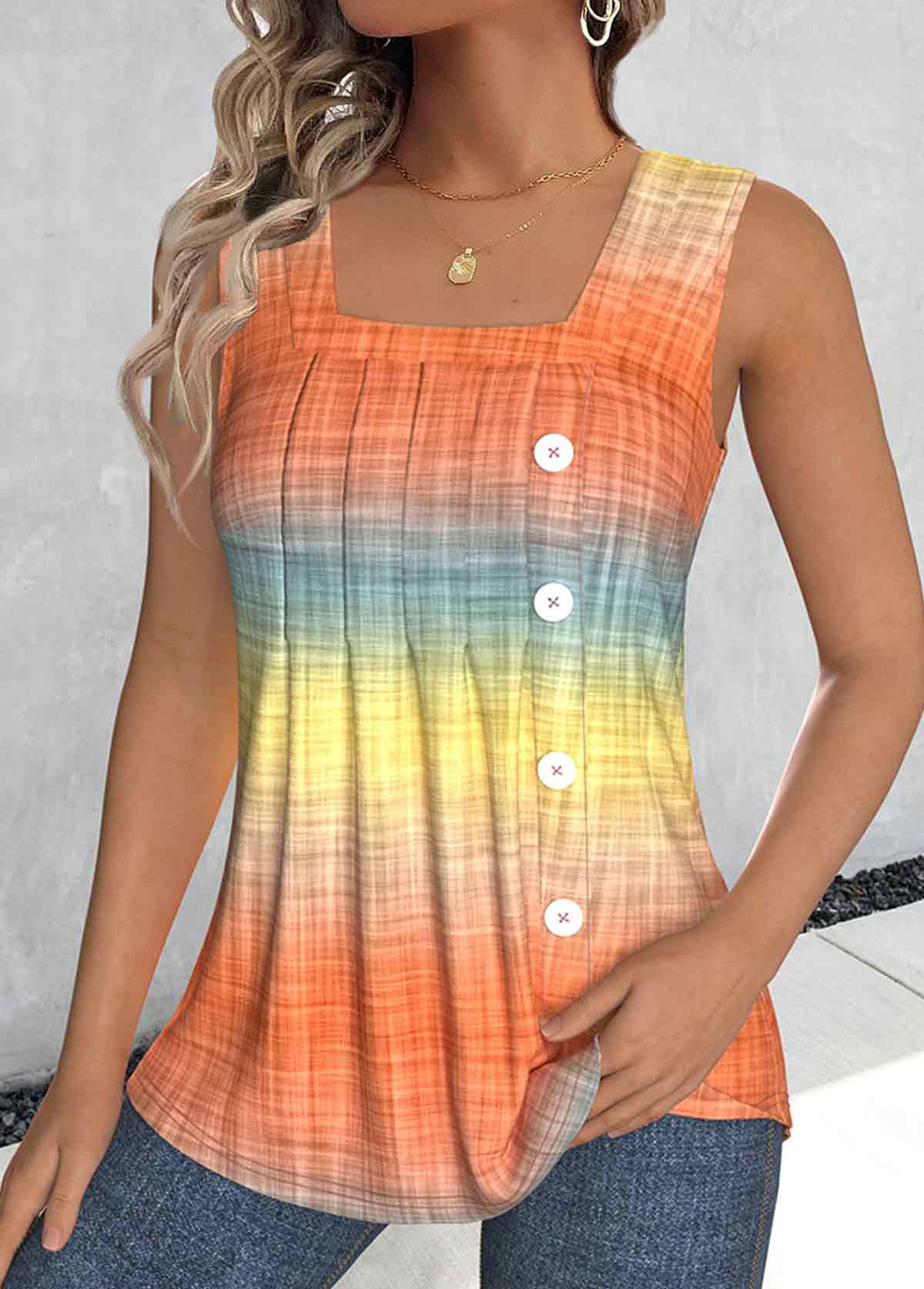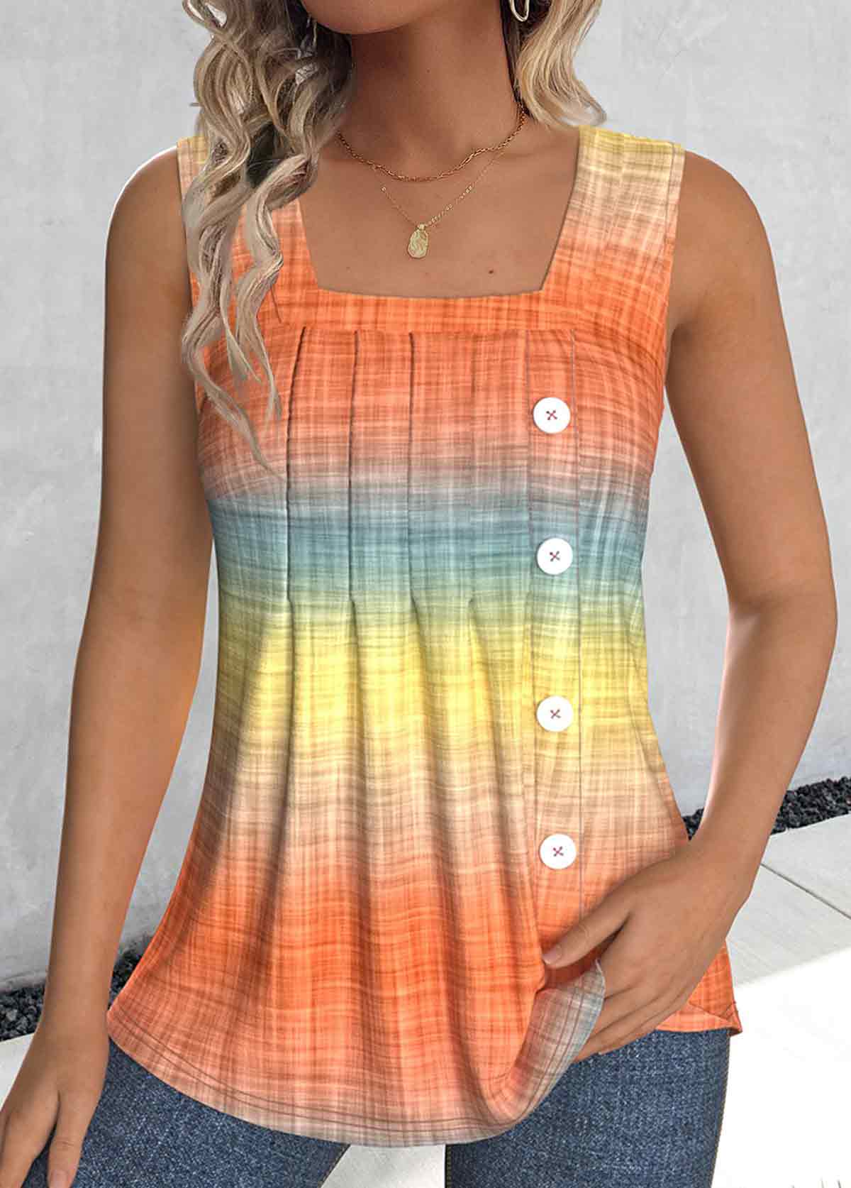 White Button Sleeveless V Neck Tank Top