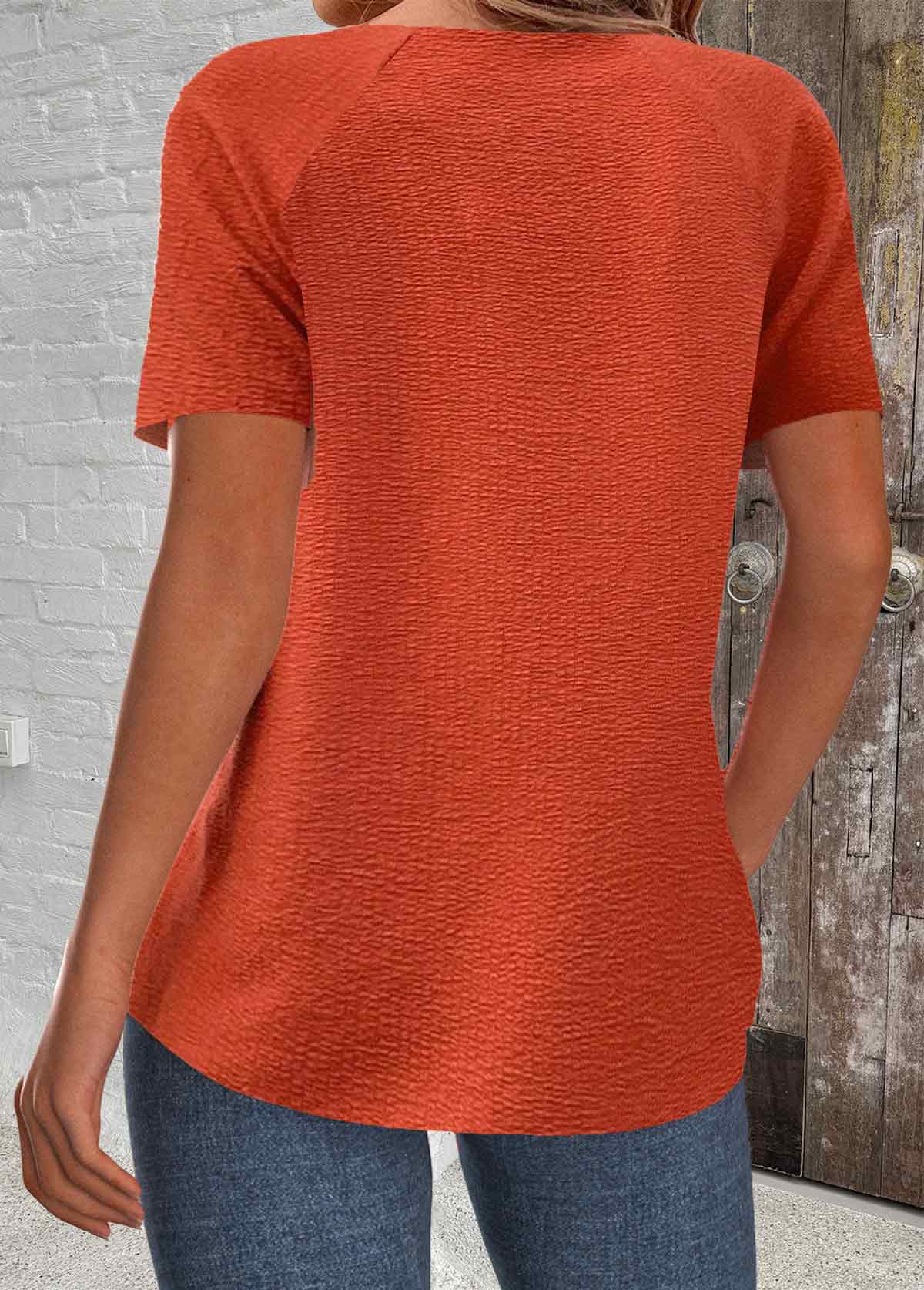 White Curved Hem Short Sleeve Split Neck T Shirt