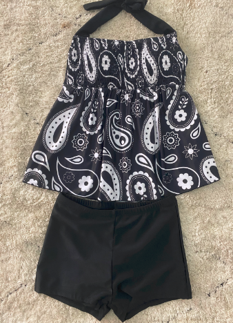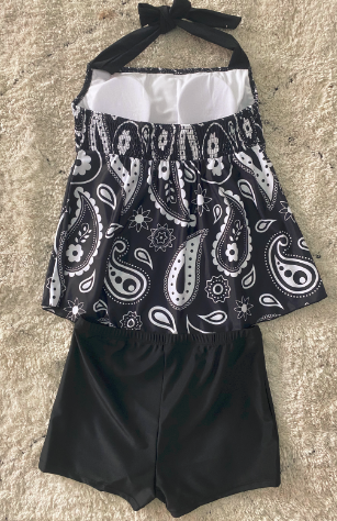Mid Waisted Paisley Print Sage Green Tankini Set