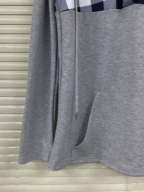Navy Tummy Coverage Plaid Long Sleeve Hoodie