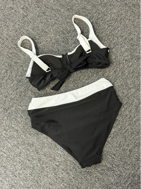 Channel timeless elegance with this classic black-and-white bikini set. Featuring a vintage-inspired high-waist bottom and a chic tie-back top, it’s the perfect blend of retro charm and modern sophistication. Ideal for making a stylish statement by the water.