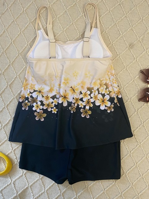 Jacquard Floral Print Light Yellow Tankini Set