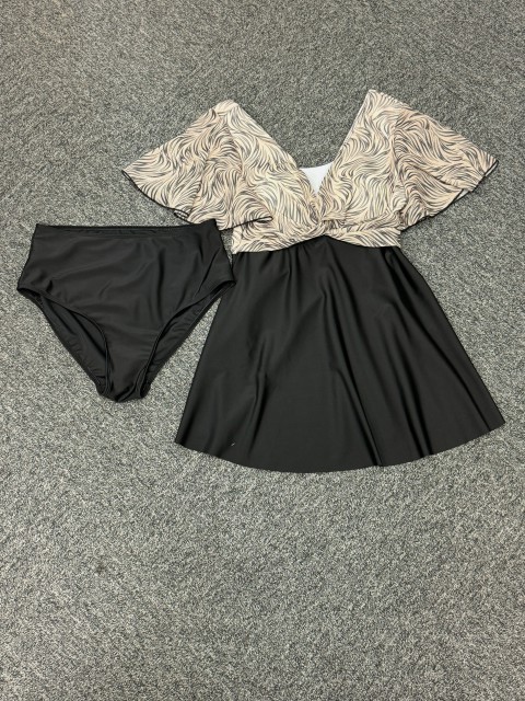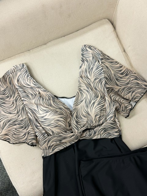 Ruffle Geometric Print Light Coffee Tankini Top