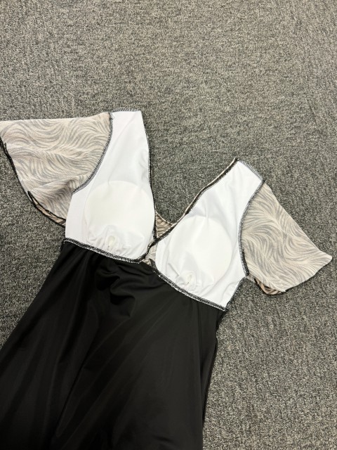 Contrast Binding Patchwork Black Tankini Set